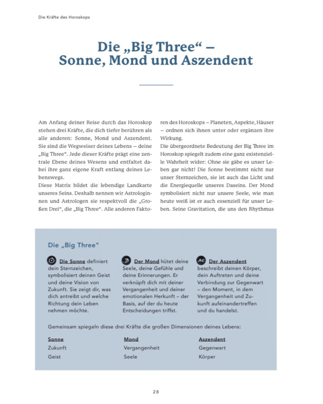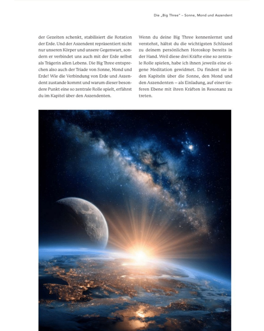 Ich zeige dir, wie Sonne, Mond und Aszendent nicht nur Vergangenheit, Gegenwart und Zukunft symbolisieren, sondern auch Körper, Seele und Geist in Einklang bringen können.